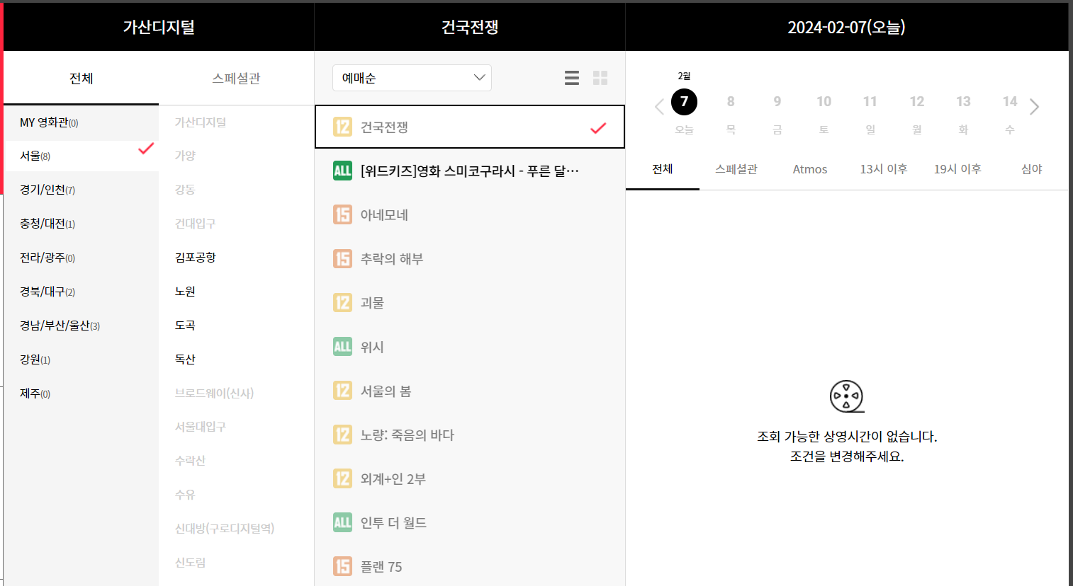 메가박스에서는 2월7일 기준 전국 24개의 상영관에서 상영중입니다.